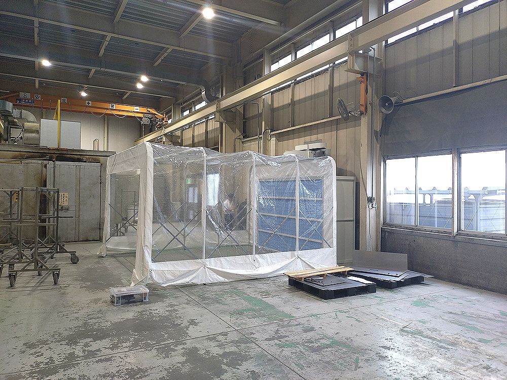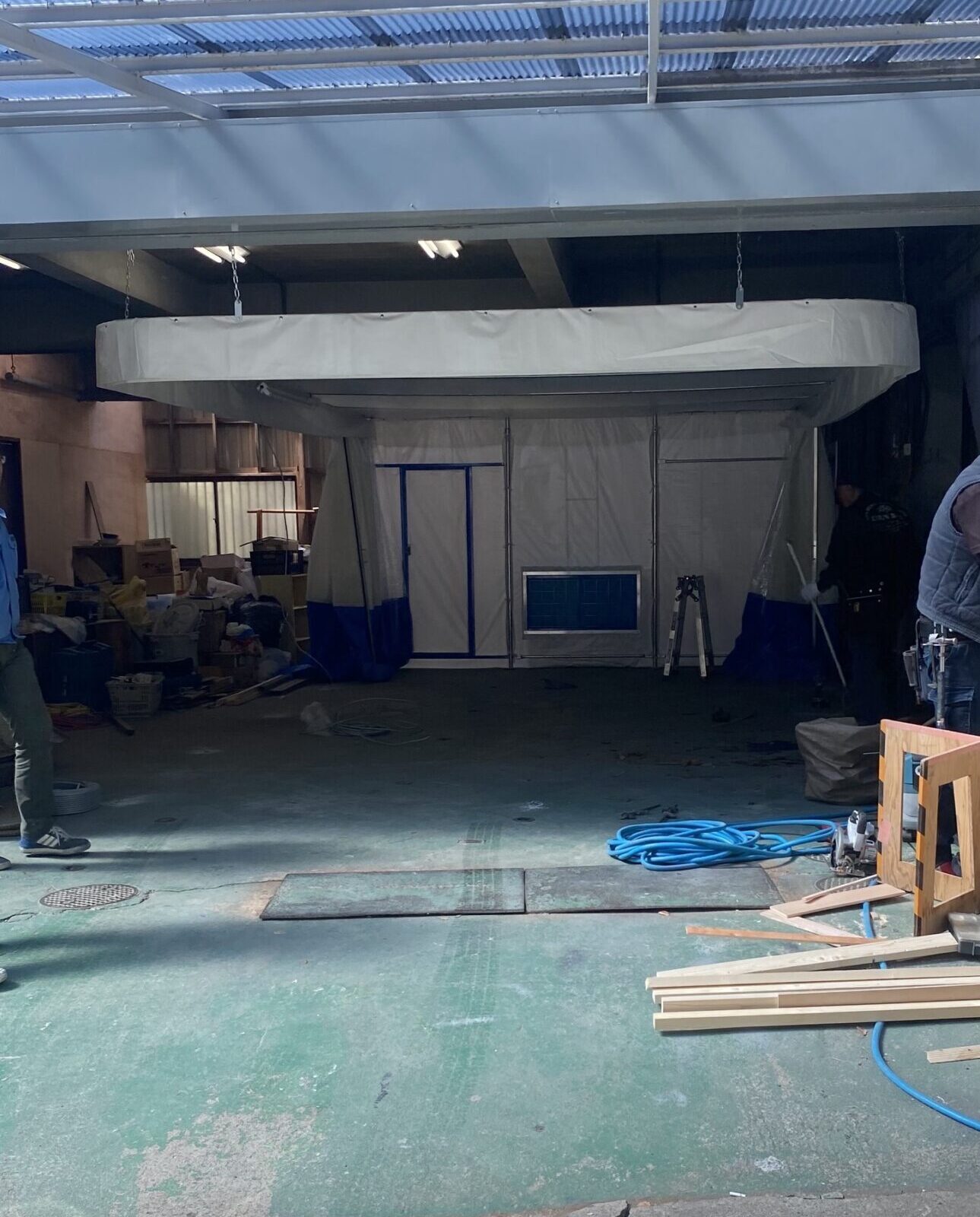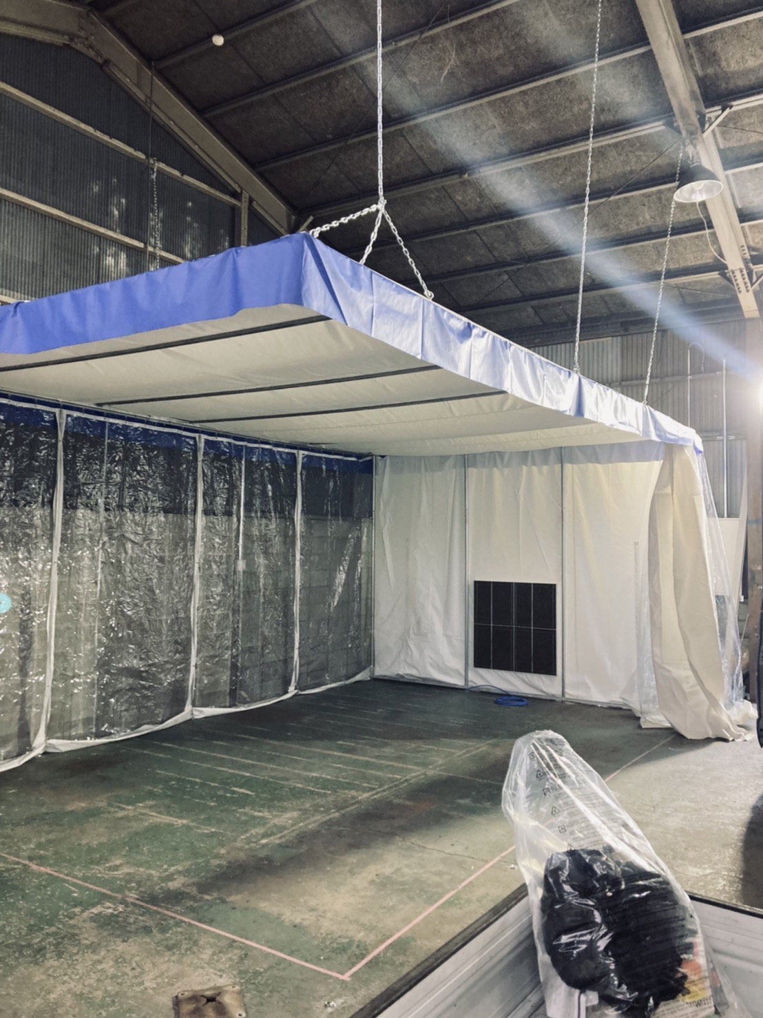 大阪府/大豊産業/天吊りブース 作業スペースの確保と安全衛生面・作業効率向上