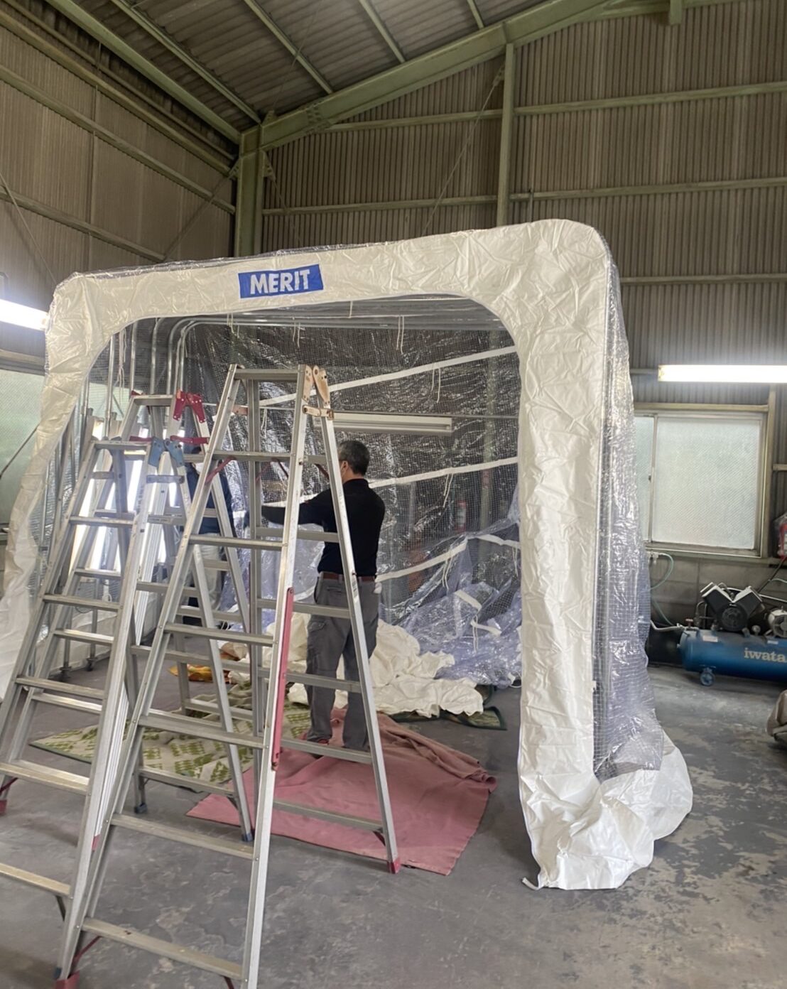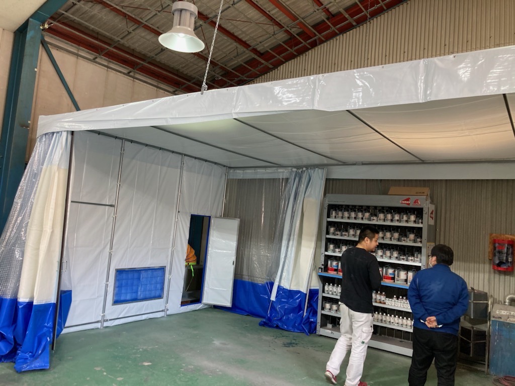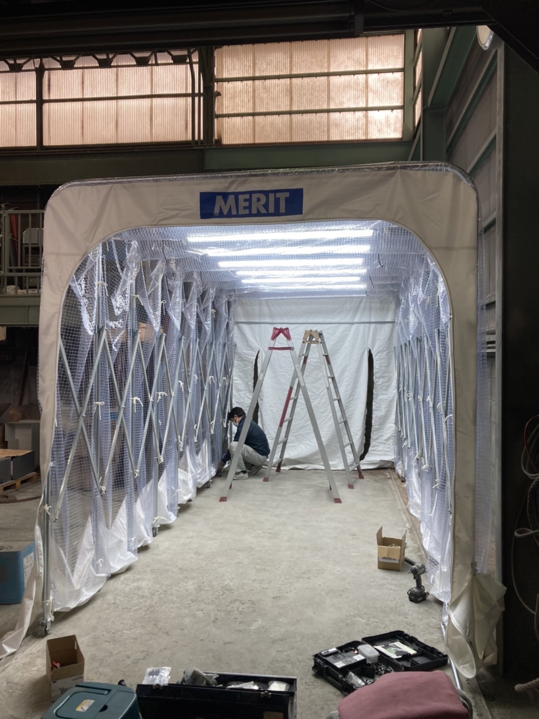 大阪府/大豊産業/天吊りブース 作業スペースの確保と安全衛生面・作業効率向上