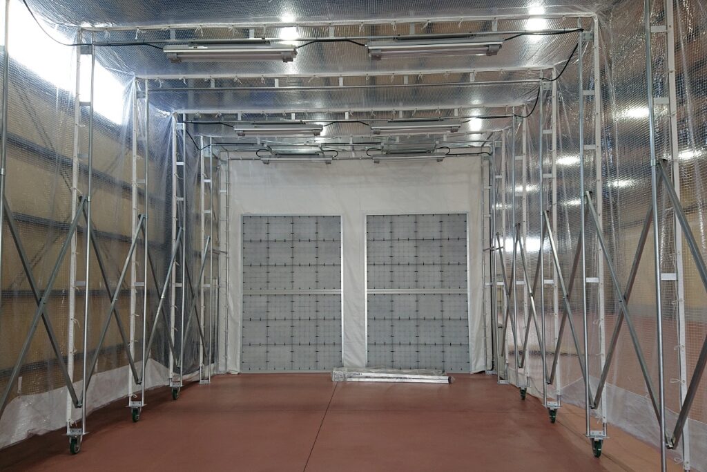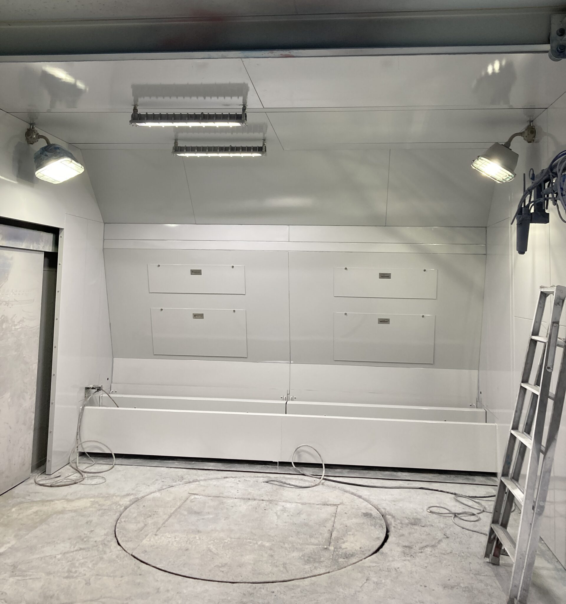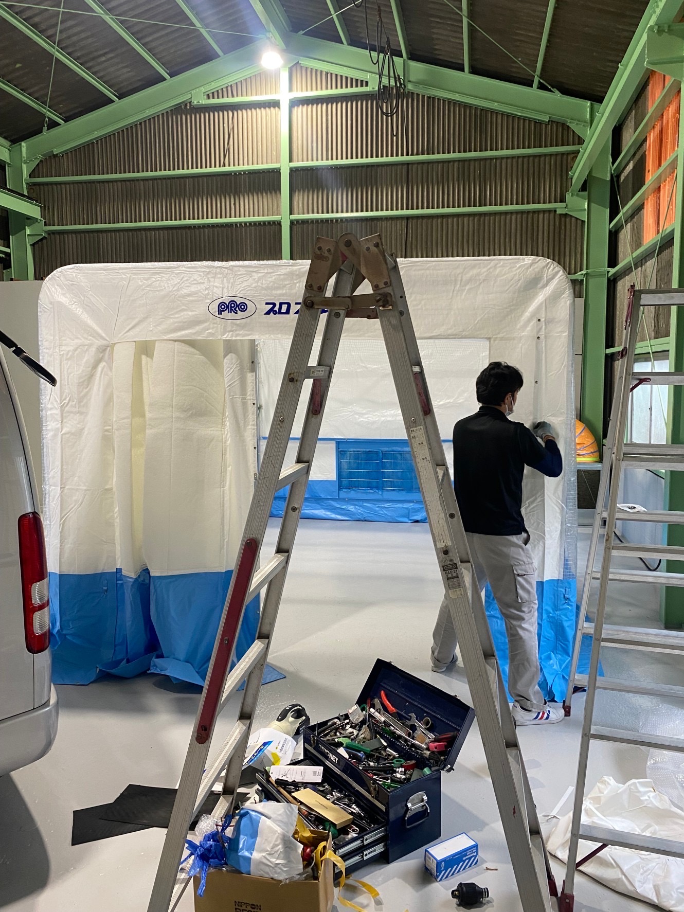 エアバス・ヘリコプターズ・ジャパン株式会社様にヘリコプターのブレードを塗装する空調機能付きの塗装乾燥ブースを設置しました。